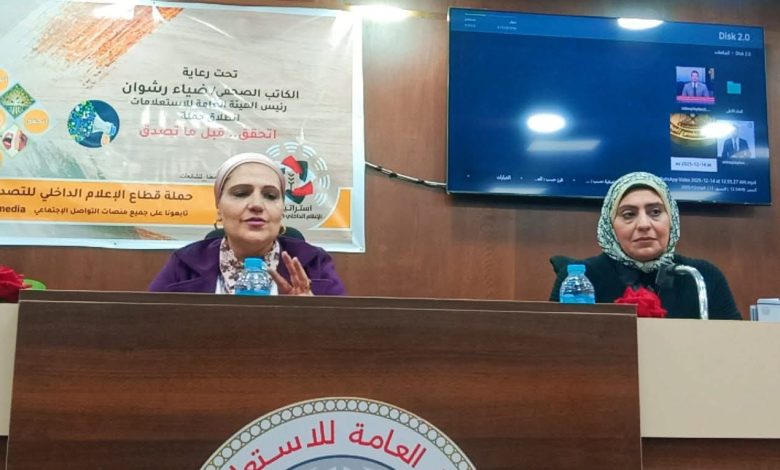 كما شهدت الفعالية عرض مجموعة من الفيديوهات التوعوية التي تناولت نماذج للشائعات المنتشرة وطرق الرد عليها، بالاعتماد على مصادر رسمية وموثوقة، من بينها الهيئة العامة للاستعلامات والمركز الإعلامي لمجلس الوزراء، بهدف توضيح آليات التحقق وتصحيح المعلومات المغلوطة.