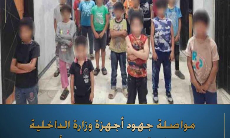 تم إتخاذ الإجراءات القانونية.. وتسليم المجنى عليهم لأهليتهم وأخذ التعهد اللازم عليهم بحسن رعايتهم والتنسيق مع الجهات المعنية لإتخاذ الإجراءات اللازمة نحو إيداع من تعذر الوصول لأهليته لإحدى دور الرعاية.