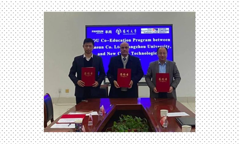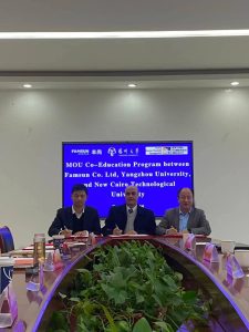 بروتوكول تعاون ثلاثى بين الجامعة وكلية ‎College of Electrical, Energy and Power Engineering التابعة لجامعة يانجتشو و شركة Famsun الشهيرة والرائدة في المجالات تقديم حلول متكاملة لإنتاج أعلاف الدواجن، وأعلاف الأحياء المائية وتصميم وتصنيع آلات الطحن، التجفيف، الكبس وتقديم حلول هندسية لاستخراج وتنقية الزيوت والدهون، بالإضافة إلى معدات إنتاج أغذية الحيوانات الأليفة و تنفيذ مشاريع هندسية كاملة في القطاع الزراعي والصناعي، بما في ذلك الإنشاءات المدنية والهياكل الفولاذية