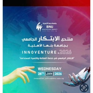 أعلنت جامعة بنها الأهلية عن إطلاق منتدى الابتكار الجامعي – Innoventre2026 تحت عنوان: «الابتكار الجامعي في خدمة الصناعة والتنمية المستدامة»، والمقرر انعقاده يوم الأربعاء 28 يناير 2026، في خطوة تعكس التزام الجامعة بتعزيز دورها كمحرك رئيسي للابتكار وربط مخرجات التعليم والبحث العلمي باحتياجات الصناعة والمجتمع، بما يتسق مع رؤية مصر 2030 والتحول نحو جامعات الجيل الرابع.
