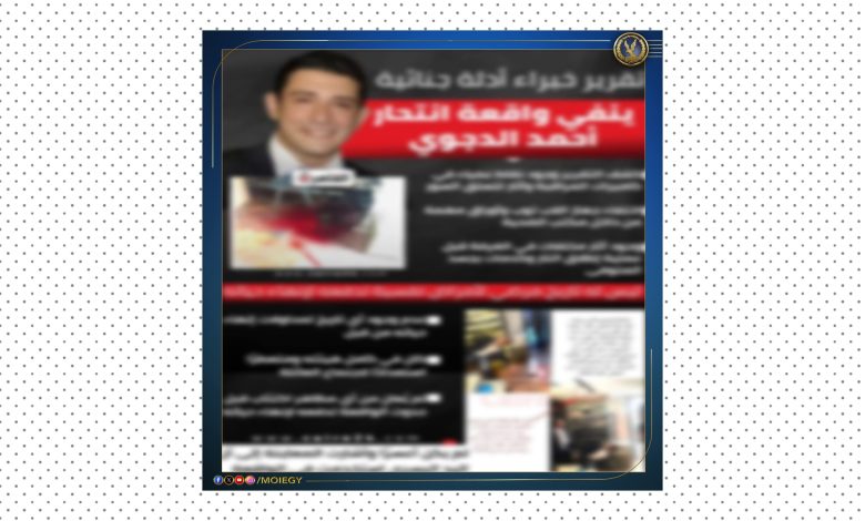 حول تقرير مزعوم منسوب صدوره لخبراء فى الأدلة الجنائية وأحد مراكز إستشارات الطب الشرعى تضمن التشكيك فى واقعة إنتحار أحد الأشخاص والإدعاء على غير الحقيقة بأن وفاته جنائية.