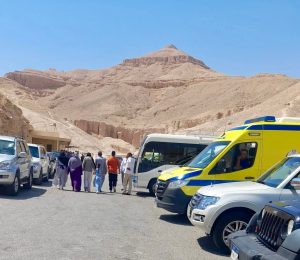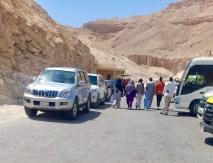 لحظة خروج موكب ملك إسبانيا وقرينته من وادي الملوك بالأقصر