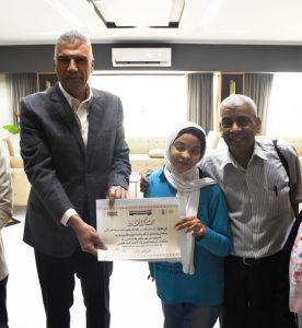 وخلال لقاء المحافظ بالبطلة آلاء وأسرتها وفى حضور سعد خليفة وكيل مديرية الشباب والرياضة ، ورضا إبراهيم نائب رئيس نادى ذوى الإحتياجات الخاصة ، عبر الدكتور إسماعيل كمال عن سعادته البالغة لتميز أبنته آلاء على حسن ، ونجاحها فى الحصول على العديد من الميداليات والمراكز الأولى فى بطولة الجمهورية والمسابقات والمحافل الرياضية المتنوعة ، لتكون نموذجاً مشرفاً يحتذى به فى قهر المستحيل ، مؤكداً على إهتمامه بتكريمها لأنها مجتهدة ، وإستطاعت بتحدى وعزيمة الأبطال فى أن تكون مصدراً للفخر والإعتزاز بها، وهو الذى جاء نتيجة للتشجيع والتحفيز المستمر من أفراد أسرتها وقد قام المحافظ باهدائها درع المحافظة وشهادة تقدير