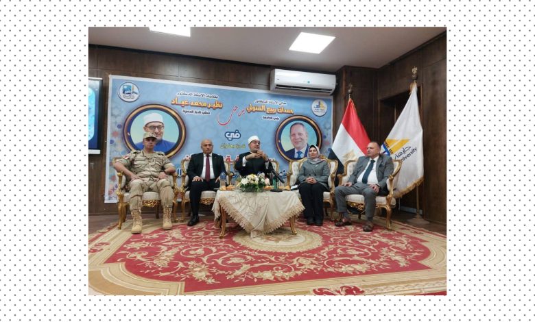 من جانبة رحب الأستاذ الدكتور محمد عبده عماشة، نائب رئيس الجامعة لشؤون التعليم والطلاب، بفضيلة المفتي وبالسادة الحضور، مؤكدًا أن تنظيم مثل هذه الندوات يعكس حرص الجامعة على بناء وعي حقيقي لدى الشباب، ودعم الفكر الوسطي المستنير في مواجهة موجات التضليل والشائعات، مشددًا على أن الجامعة تسعى لأن تكون مركزًا للفكر الراشد ومساحة للحوار المسؤول.