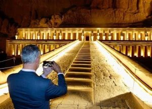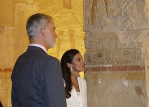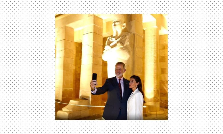 ملك إسبانيا وزوجته يلتقطان صورة سيلفي داخل معبد حتشبسوت بالأقصر