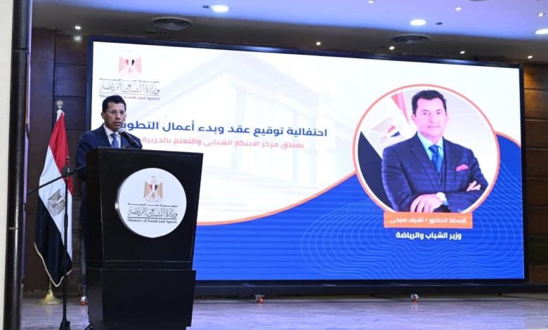 • وزير الشباب والرياضة يشهد احتفالية توقيع عقد تطوير فندق مركز الابتكار الشبابي والتعلم بالجزيرة