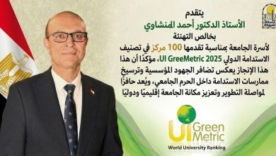 الدكتور المنشاوي يهنئ أسرة جامعة أسيوط لتقدمها 100 مركز في تصنيف الاستدامة الدولي GreenMetric 2025 كتب : احمد سلامة يتقدم…